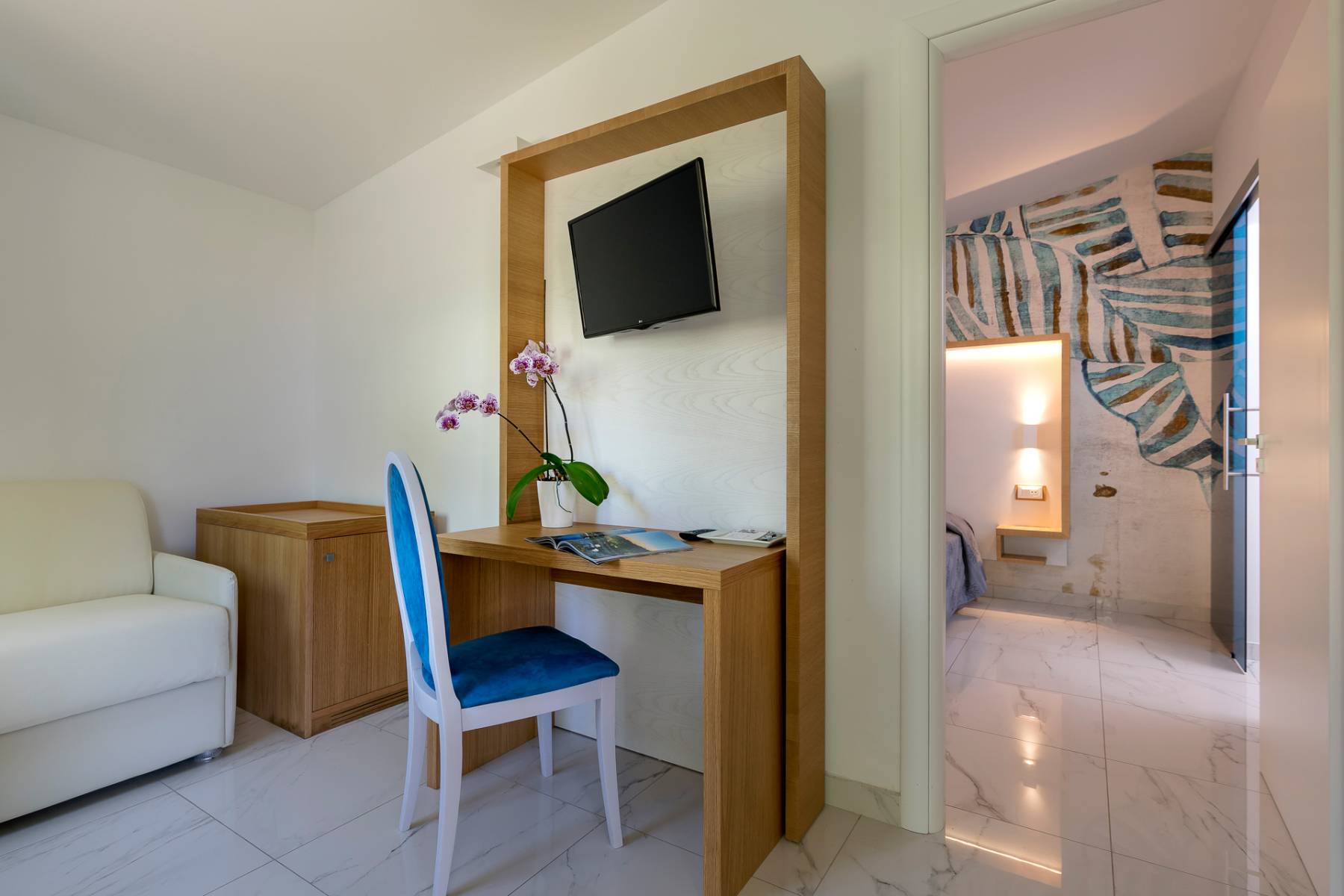 Dvoulůžkový pokoj, Annex: telefon, trezor (zdarma), minibar (za poplatek), koupelna/WC (vysoušeč vlasů), klimatizace, TV, terasa nebo balkon. Za příplatek: Dvoulůžkový pokoj, Comfort, Annex: prostornější, Dvoulůžkový pokoj, Comfort, Annex, Výhled moře: prostornější. Všechny pokoje jsou umístěny v dvoupatrových budovách v rámci areálu.