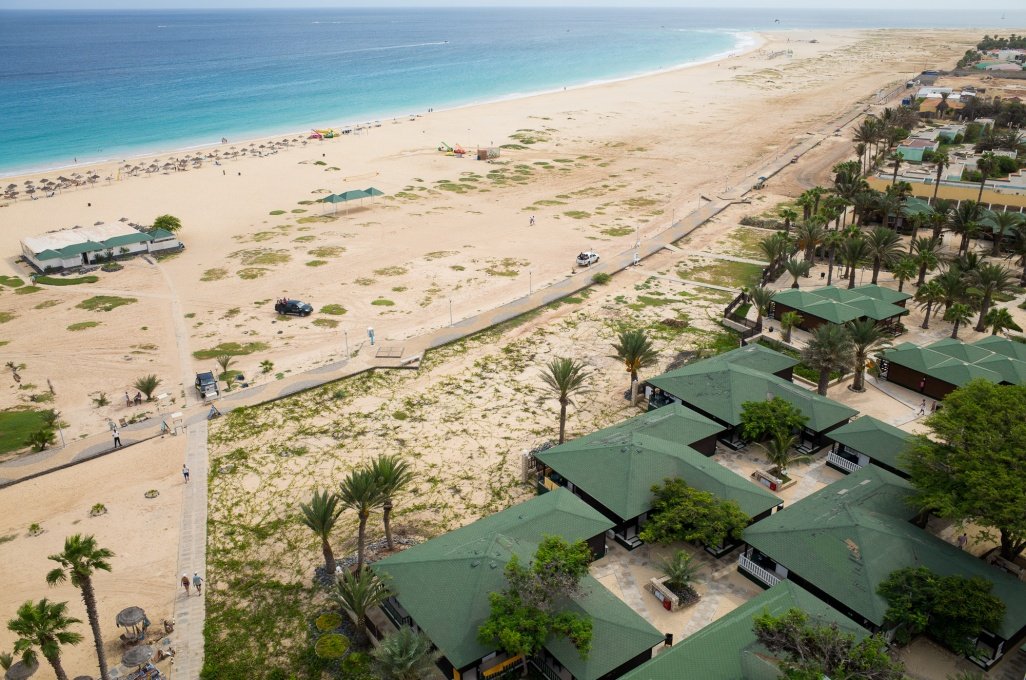 Rozlehlý komplex přízemních dřevěných bungalovů v typickém místním stylu a jedné zděné dvoupodlažní budovy leží v nejkrásnějším místě mělké, od příboje a proudů chráněné zátoky, přímo u městečka Santa Maria. Hotel je součástí portugalské hotelové sítě, známé pečlivostí poskytovaných služeb. Krásná pláž leží v těsné blízkosti hotelu. Letiště se nachází ve vzdálenosti asi 20 km od hotelu. Nejbližší nákupní možnosti jsou v centru letoviska vzdáleném asi 1 km.
