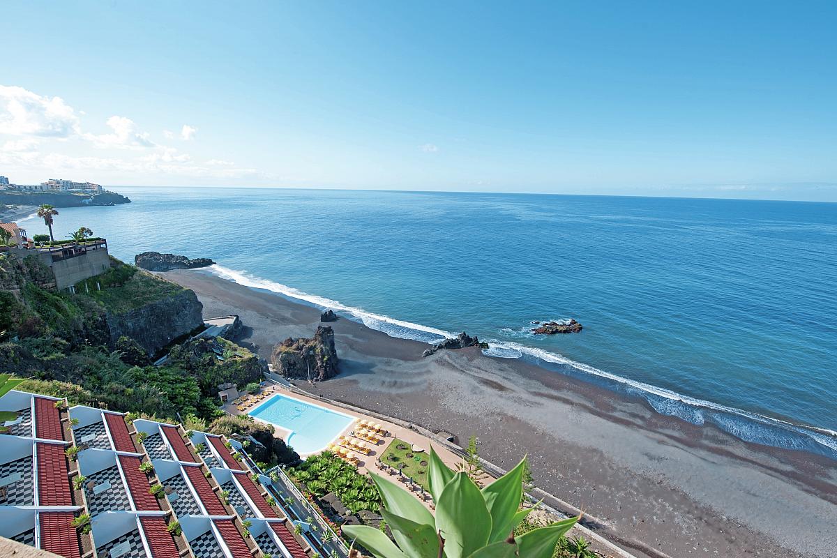 Přímo u hotelu pláž částečně s tmavým vulkanickým pískem, na ni navazuje kamenitá pláž Praia Formosa.