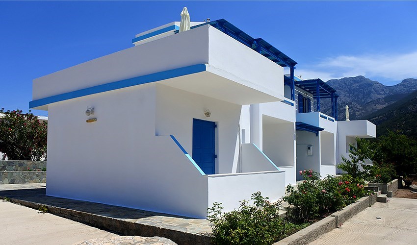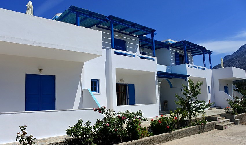 Tradiční řecký apartmánový dům s rodinnou atmosférou se nachází na okraji letoviska Lefkos. Modrobílý dům s buganviliemi vytváří romantické prostředí, které umocňuje pohoří, jenž se rozprostírá nad letoviskem Lefkos. Nejbližší taverna se nachází vedle domu, supermarket cca 150 m. Centrum letoviska Lefkos, které leží cca 1 km od apartmánového domu, nabízí několik taveren, obchůdků, půjčovnu aut...Pobyt doporučujeme milovníkům tradiční řecké atmosféry, kteří vyhledávají klidné prostředí a možnost návštěvy místních taveren.
