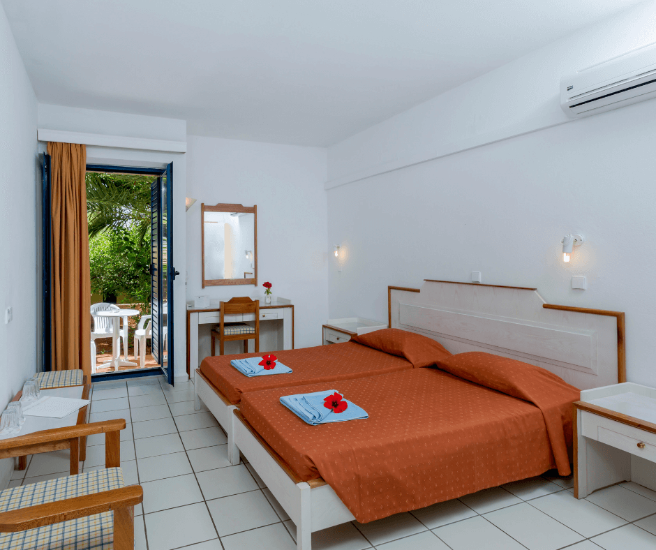 Standardní pokoj - individuálně ovládaná klimatizace (zdarma)telefon, TV se satelitním příjmem, minilednička (1× láhev vody po příletu), vlastní sociální zařízení (vana, vysoušeč vlasů, WC), trezor (zdarma), Wi-Fi (zdarma), balkon nebo terasa, dětská postýlka na vyžádání (zdarma). Ubytování za příplatek: rodinný pokoj – 2 místnosti s max. kapacitou 4 osoby, ubytování v bungalovech.