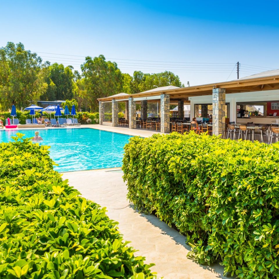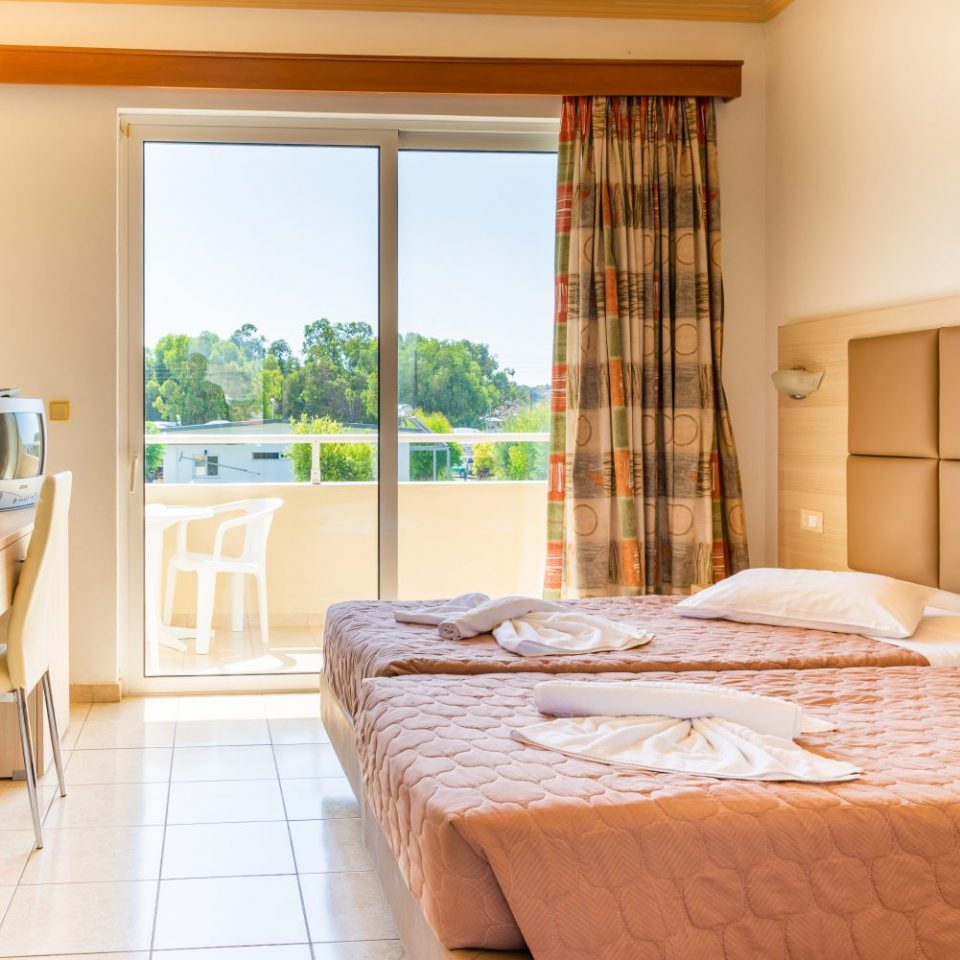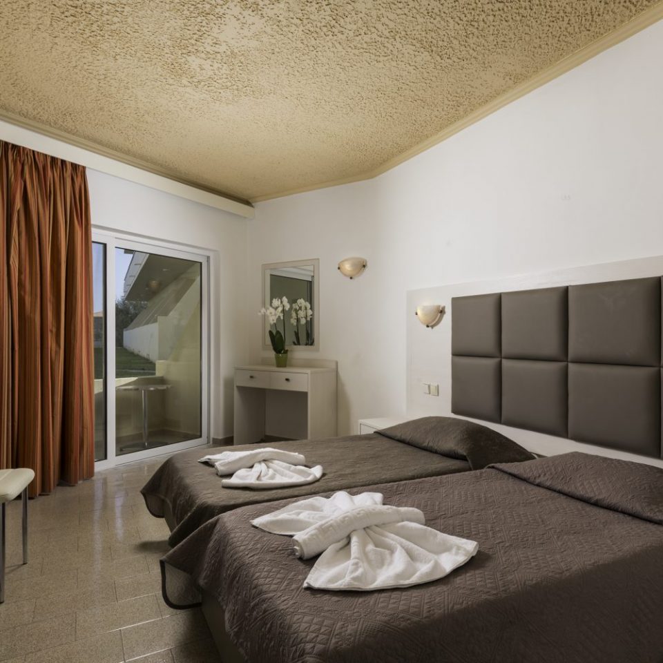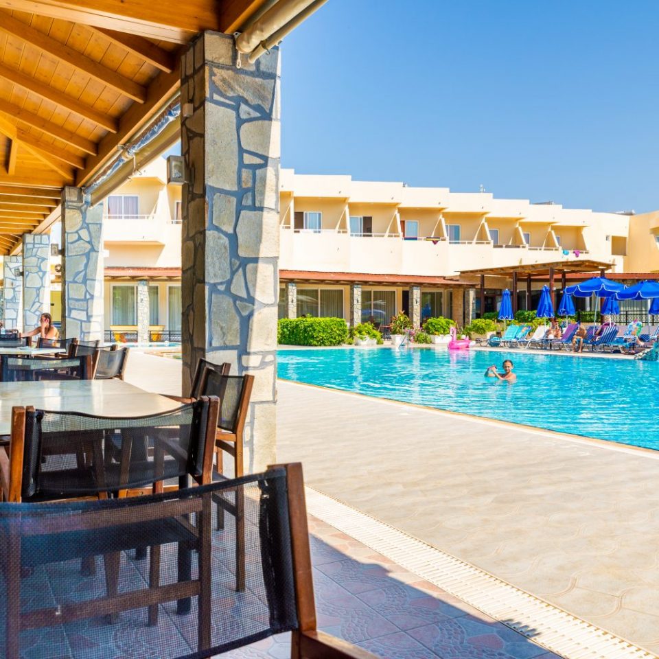 Příjemný hotelový komplex s rodinnou atmosférou se nachází v zahradě, v klidné části letoviska Kolymbia. Restaurace, taverny, bary a obchody cca 300 m, letiště cca 31 kk, autobusová zastávka u hotelu (nabízí spoje do hlavního města Rhodos).