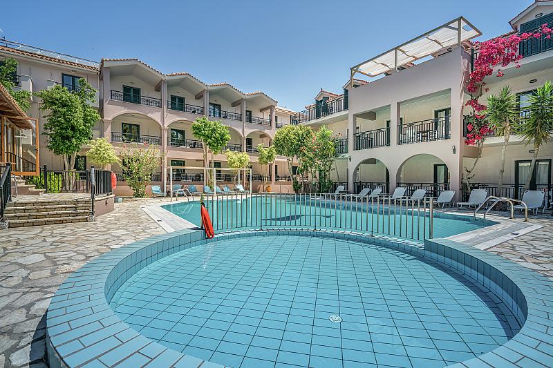 V klidné oblasti, obklopený zelení. Příjemné středisko Vassilikos s několika tavernami a obchody pouze několik minut chůze. Rušné turistické středisko Argassi s bohatým nočním životem cca 10 km. Hlavní město Zakynthos cca 12 km (spojení linkovým autobusem, zastávka 200 m).