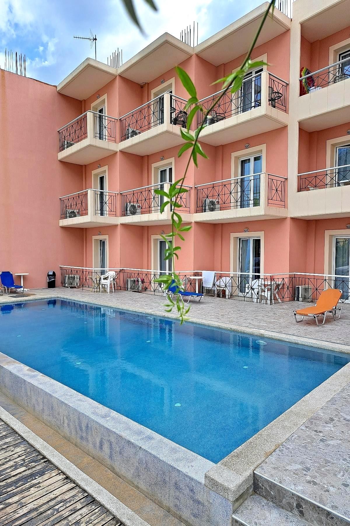Příjemný rodinný hotel přímo u krásné písečno-oblázkové pláže, s tavernou a posezením na terase se vzrostlými stromy, nedaleko centra letoviska Nidri s přístavem, mnoha obchůdky a restauracemi, zároveň stranou od hlavní turistické třídy.