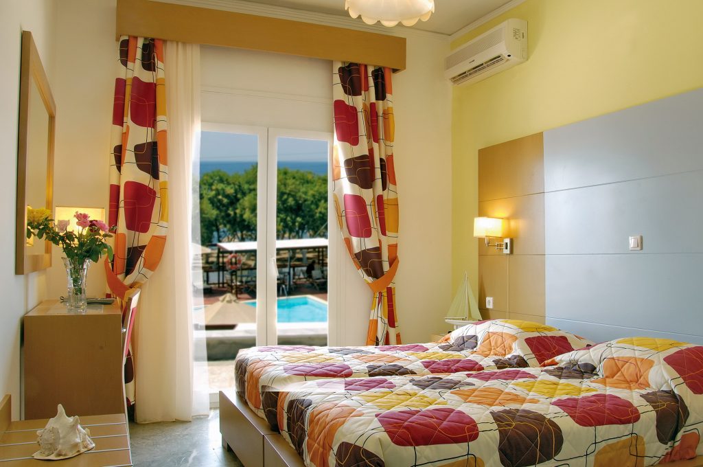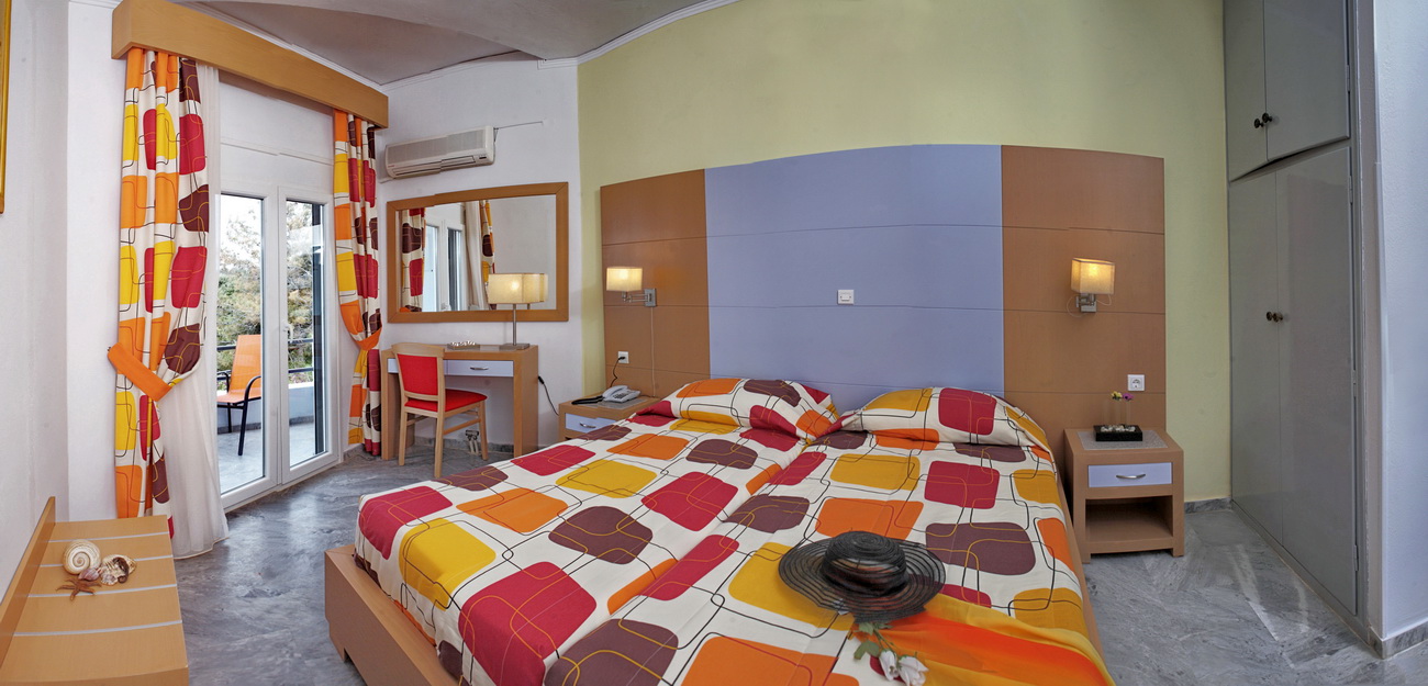 Standardní dvoulůžkové pokoje s možností přistýlky mají vlastní sociální zařízení (koupelna, WC), klimatizaci, SAT/TV, ledničku, balkon nebo terasu. Za příplatek prostornější rodinné pokoje s možností až dvou přistýlek. Přistýlky jsou formou palandy. Pokoje mají starší vybavení.