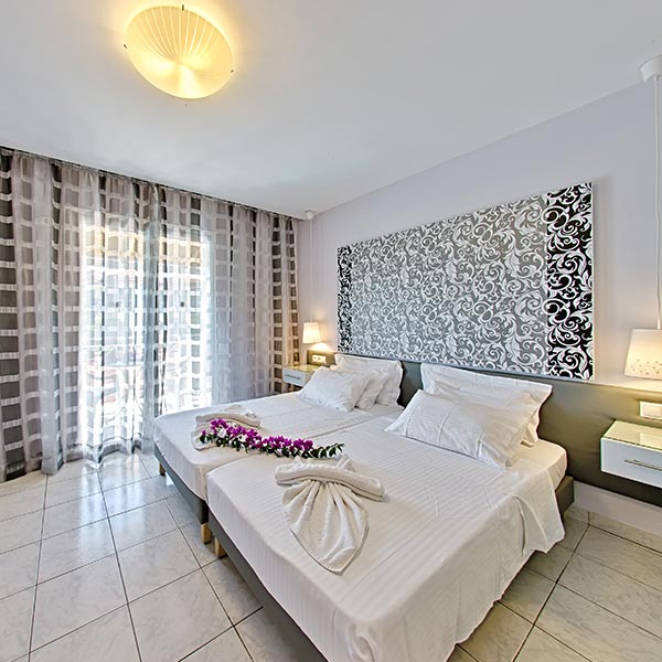 Standardní dvoulůžkové pokoje s možností přistýlky jsou vybaveny vlastním příslušenstvím (koupelna, vysoušeč vlasů, WC), TV, WiFi, telefonem, chladničkou a balkonem; za poplatek klimatizace (5 EUR/den), trezor (cca 2 EUR/den).