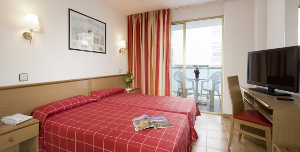 Účelně zařízené standardní dvoulůžkové pokoje s možností až 2 přistýlek pro děti jsou vybaveny vlastním příslušenstvím (koupelna, WC), klimatizací (v provozu pouze v hlavní sezóně), SAT/TV a balkonem; za poplatek trezor, chladnička, dětská postýlka (cca 6 EUR/den).