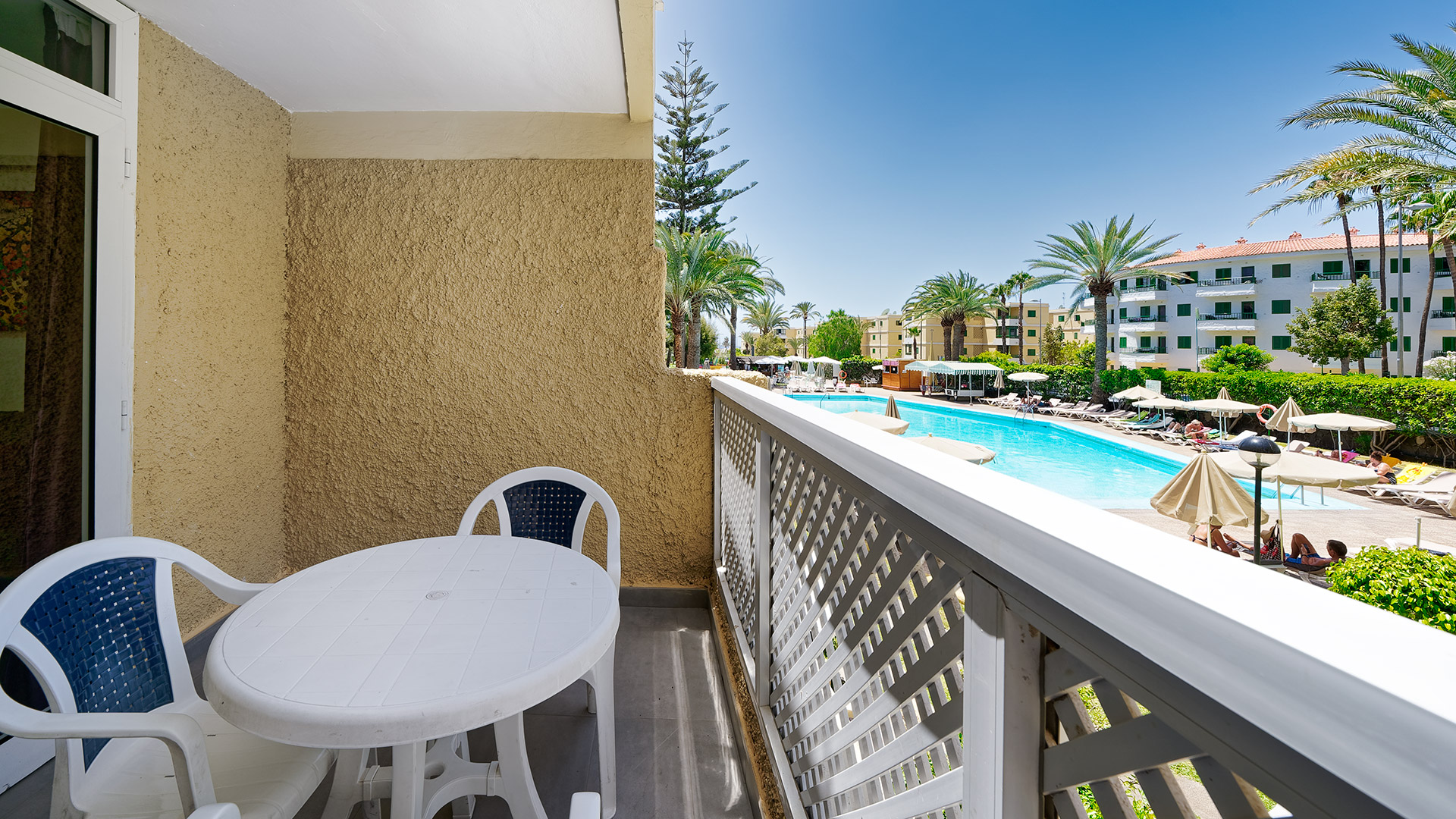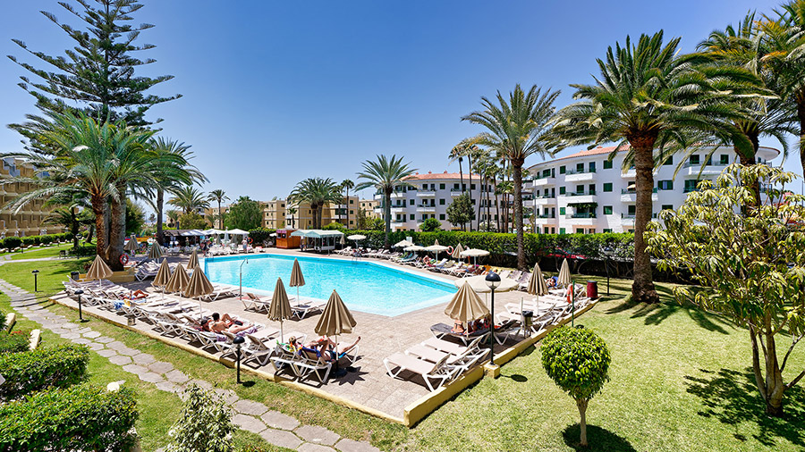 Světlá písečná pláž Playa del Inglés je vzdálena asi 400 m od komplexu cestou z mírného kopce.