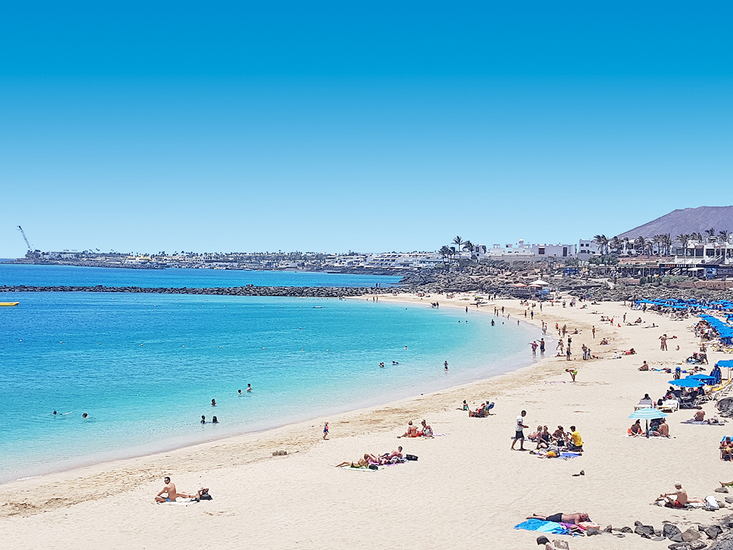 Světlá písečná pláž Playa Flamingo s pozvolným vstupem do moře cca 300 m, lehátka a slunečníky za poplatek. Nejkrásnější pláže ostrova Playas del Papagayo v chráněné přírodní oblasti cca 9 km.