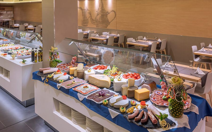 Polopenze, možnost dokoupení light all inclusive, které zahrnuje plnou penzi formou bufetu, limitované množství vody a vína k obědu a večeři.