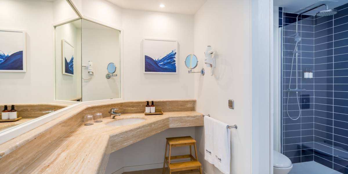 Standardní prostorné pokoje s možností až dvou přistýlek (až pro dvě děti do 13 let nebo pro jednu dospělou osobu) jsou vybaveny vlastním příslušenstvím (vana nebo sprchový kout, WC, fén), telefonem, klimatizací, SAT/TV, minibarem (doplnění za poplatek), za poplatek trezor (cca 3 eur/den) a s balkonem nebo terasou. Za příplatek pokoje standard s výhledem na moře. Za příplatek dvoulůžkové pokoje Deluxe s možností jedné přistýlky pro dospělou osobu nebo až dvou přistýlek pro děti, elegantní a pohodlný; vybavení jako ve standardním pokoji, navíc župany a pantofle na pokoji, ručníky k bazénu zdarma, set na přípravu kávy, parkoviště zdarma, neomezený vstup do water circuit ve spa centru zdarma (procedury a masáže za poplatek). Za příplatek pokoje Deluxe s výhledem na moře.