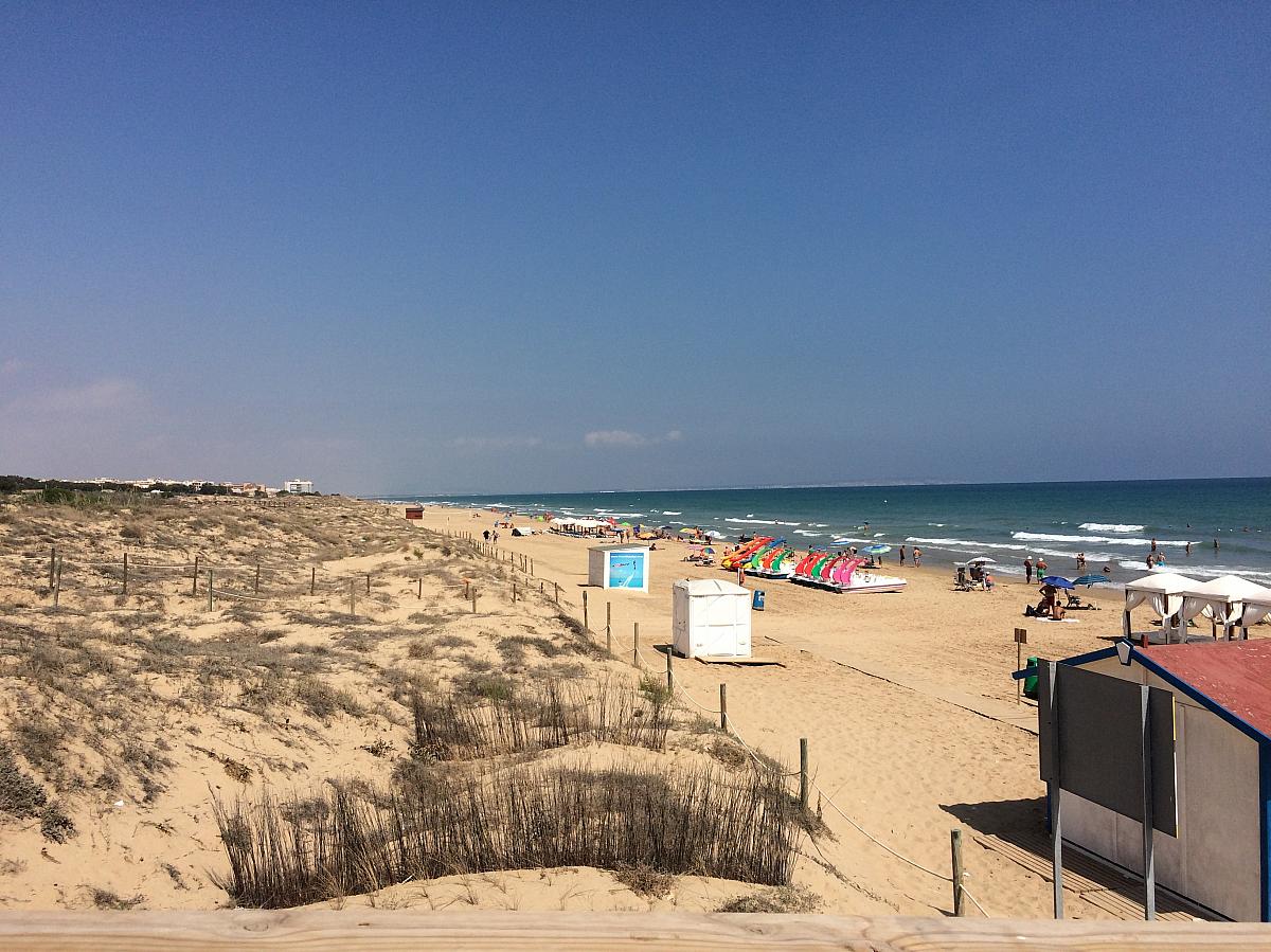 Přímo u pláže v okrajové residenční čtvrti střediska Guardamar. V bezprostřední blízkosti se nachází chráněná přírodní oblast písečných dun, městečko Guardamar s četnými nákupními možnostmi cca 5 km. Zastávka linkového autobusu a nejblližší nákupní možnosti cca 100 m.