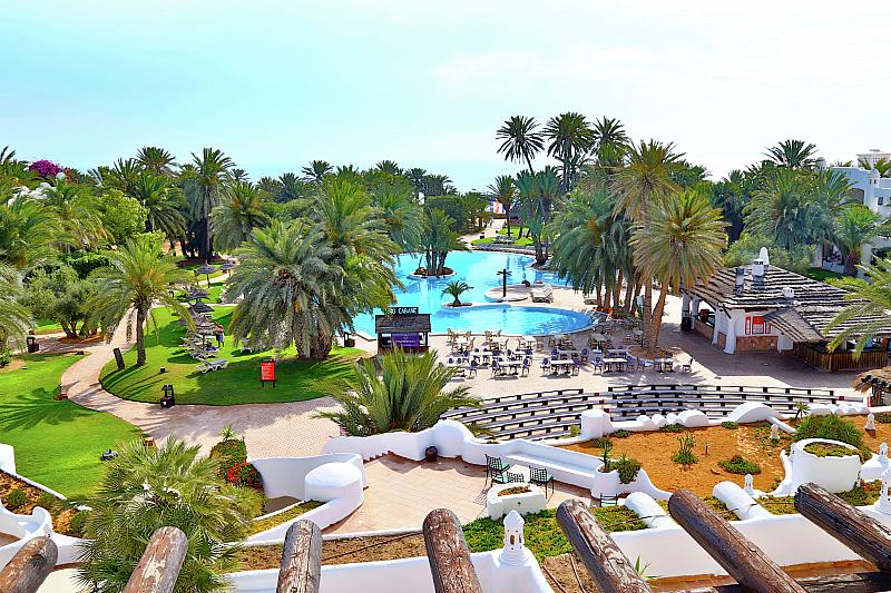 Recepce se směnárnou, bary, hlavní restaurace, 3 restaurace á la carte (tuniská, rybí, italská – nutná rezervace), maurská kavárna, supermarket, společenská místnost, kadeřnictví, diskotéka, thalasso centrum. Venkovní prostory ve vzrostlé zahradě – hlavní bazény, termální bazén, dětský bazén, terasa na slunění s lehátky a slunečníky zdarma, dětské hřiště. Dětská postýlka zdarma, dětská stolička v hlavní restauraci, dětský sladkovodní bazén. Zdarma: aerobik, plážový volejbal, šipky, minigolf, stolní tenis, tenis – 2 hod/pobyt (osvětlení za poplatek), lukostřelba. Za poplatek: vodní sporty na pláži. Zdarma: WiFi v lobby. Za poplatek: internetový koutek.