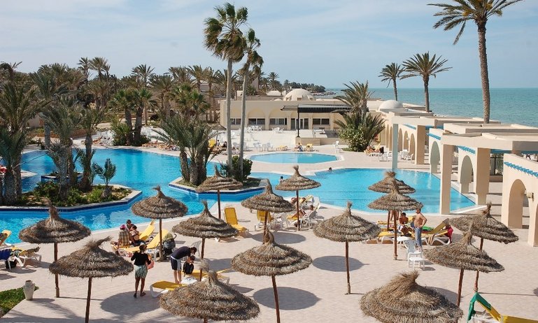 Velmi oblíbený, rozlehlý hotelový resort je situován přímo na krásné písčité pláži jen 6 km od centra malebného města Zarzis (nejjižnější letovisko v Tunisku). Nákupní možnosti a zábavu mají hosté přímo v hotelu nebo v letovisku Zarzis, které je pohodlně dostupné místní dopravou nebo levným a spolehlivým taxi (obchody, kavárny, restaurace, rybí trh, bazar, sportoviště, ovocné trhy, turistické atrakce, vodní sporty na pláži). Mezinárodní letiště Djerba je vzdáleno 60 km.