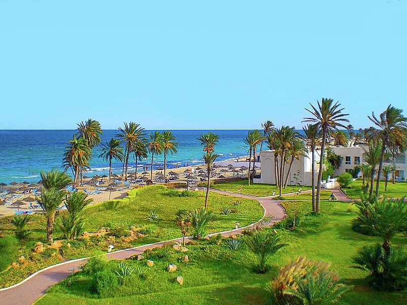 U písečné pláže v dostupné vzdálenosti od centra typického městečka Zarzis (cca 2 km). Nákupní a zábavní možnosti v okolí hotelu.