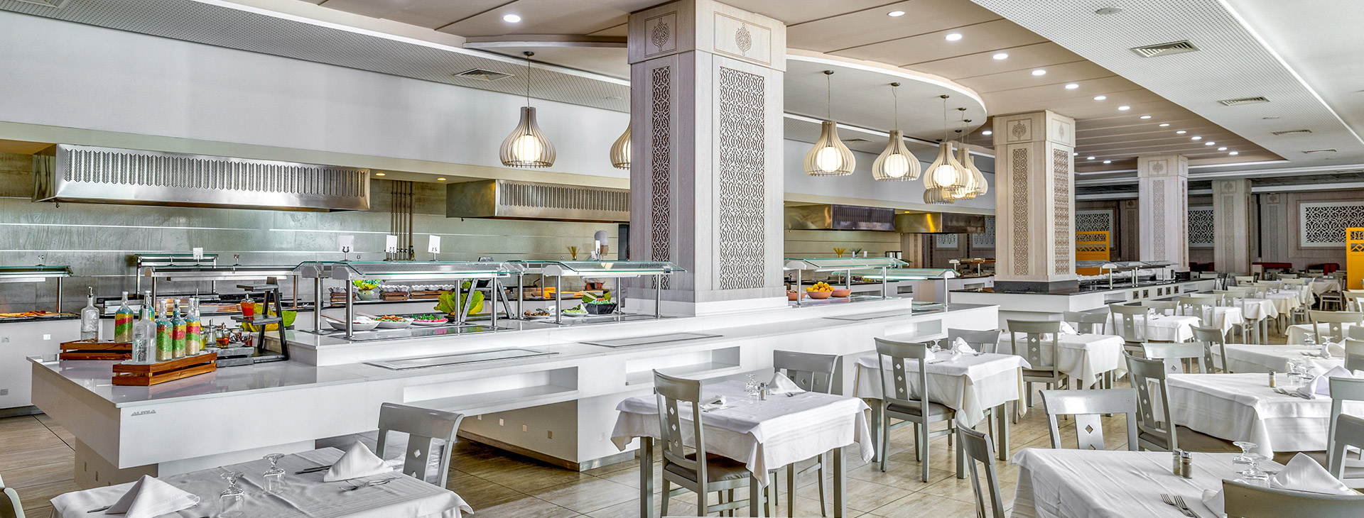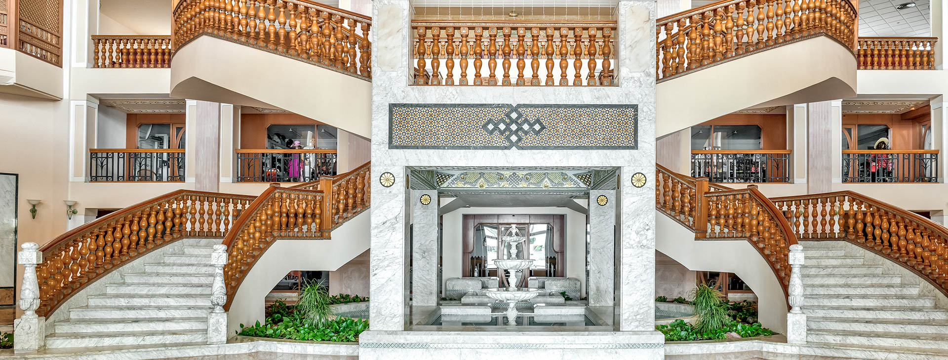 Celkem 452 pokojů (5 pater, výtahy), vstupní hala s recepcí, lobby bar, hlavní restaurace, 2 tematické restaurace, maurská kavárna, konferenční centrum, krytý bazén a obchůdky se suvenýry. V zahradě velký bazén, bar u bazénu, snack bar u bazénu a terasa s lehátky, slunečníky. Osušky oproti kauci. Lehké animační a zábavné programy. Děti: dětský bazén, miniklub, dětské hřiště, dětská postýlka zdarma (na vyžádání). Zdarma: aerobik, plážový volejbal, šipky, stolní tenis, tenis (osvětlení za poplatek), lukostřelba a další sportovní aktivity v rámci animačních programů. Za poplatek: fitness, vodní sporty na pláži, minigolf, billiárd. Za poplatek: sauna, thalasso terapie, hammam a různé druhy masáží. Zdarma: WiFi v lobby.