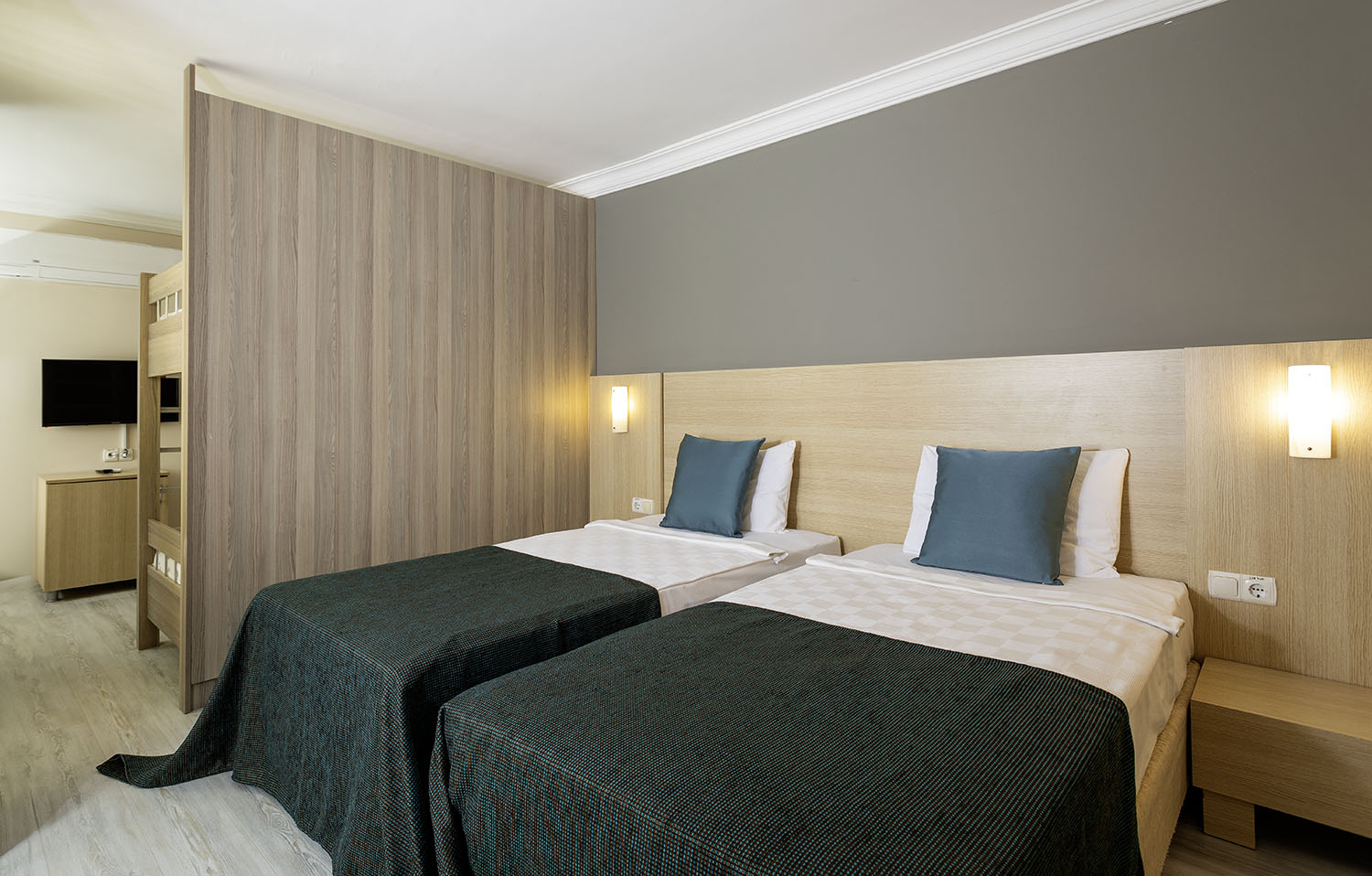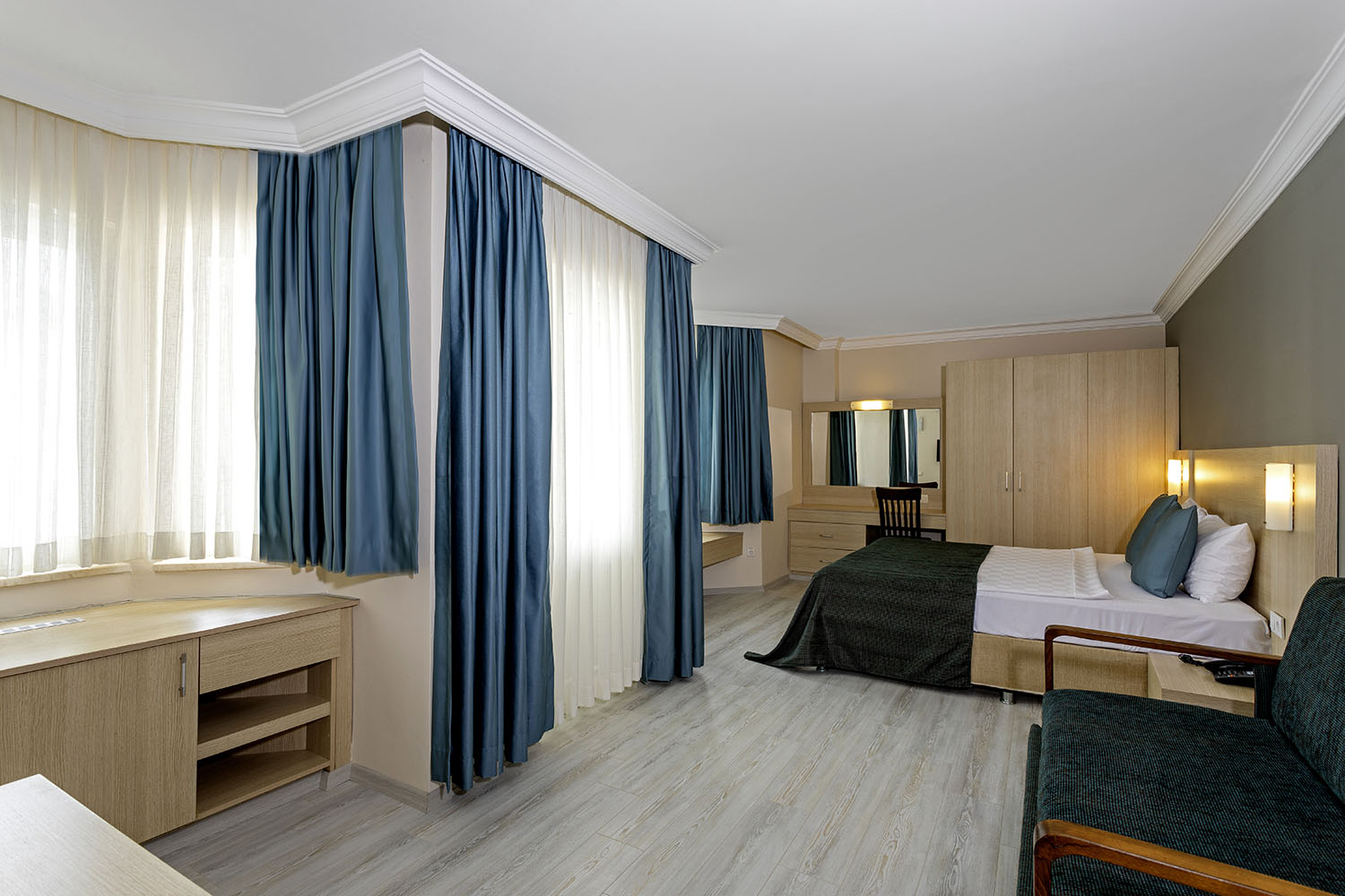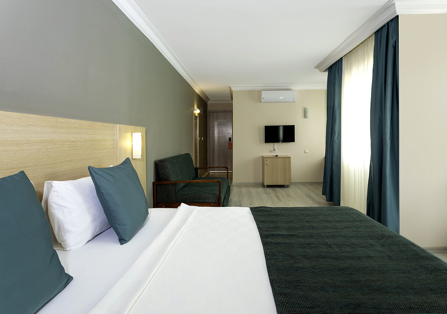 Dvoulůžkový pokoj: koupelna/WC (vysoušeč vlasů), individuální klimatizace, TV/Sat., trezor (za poplatek), rychlovarní konvice, minibar (za poplatek), palanda/rozkládací gauč, balkon.