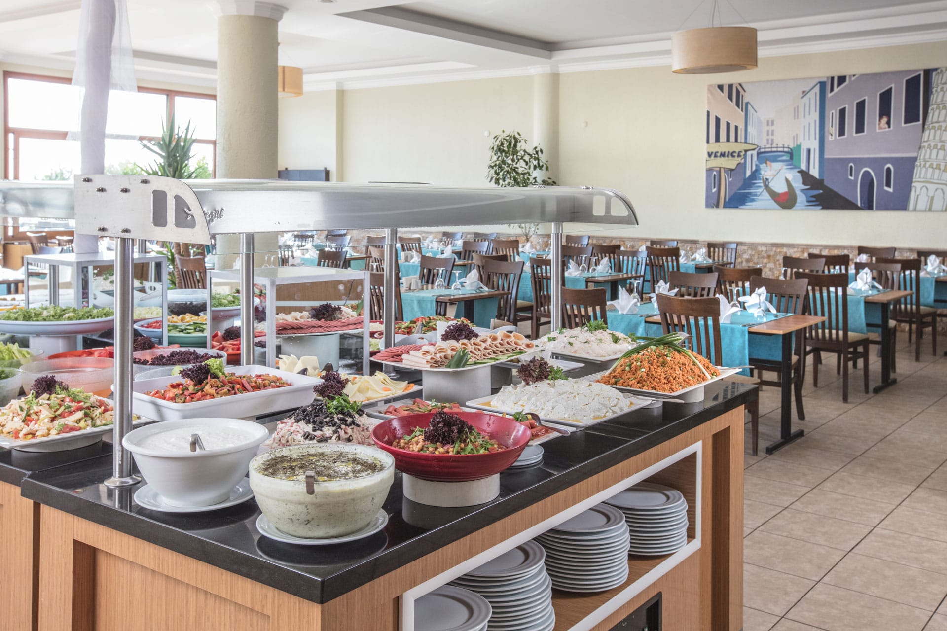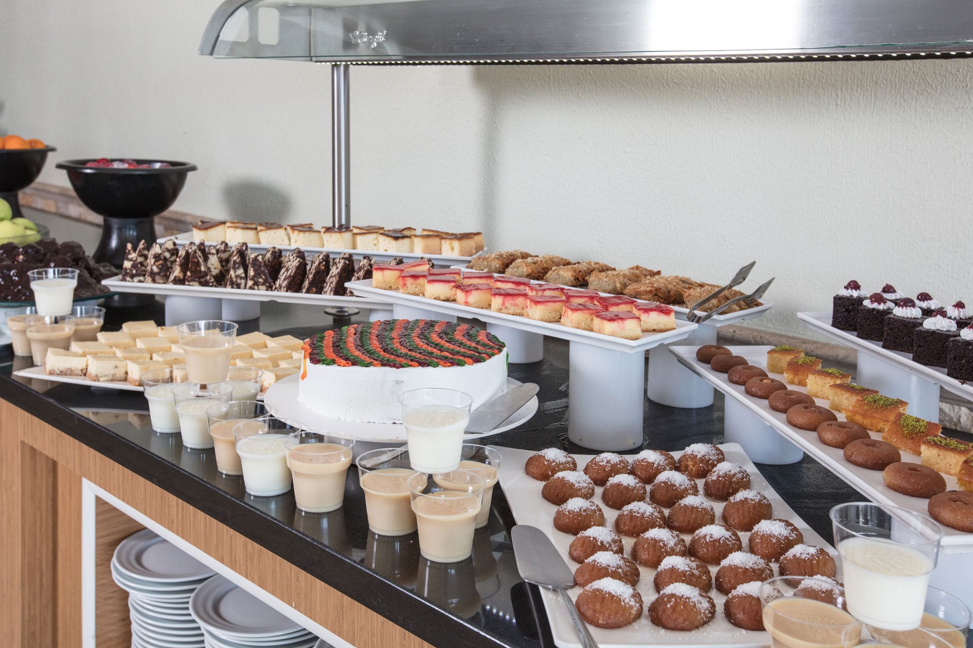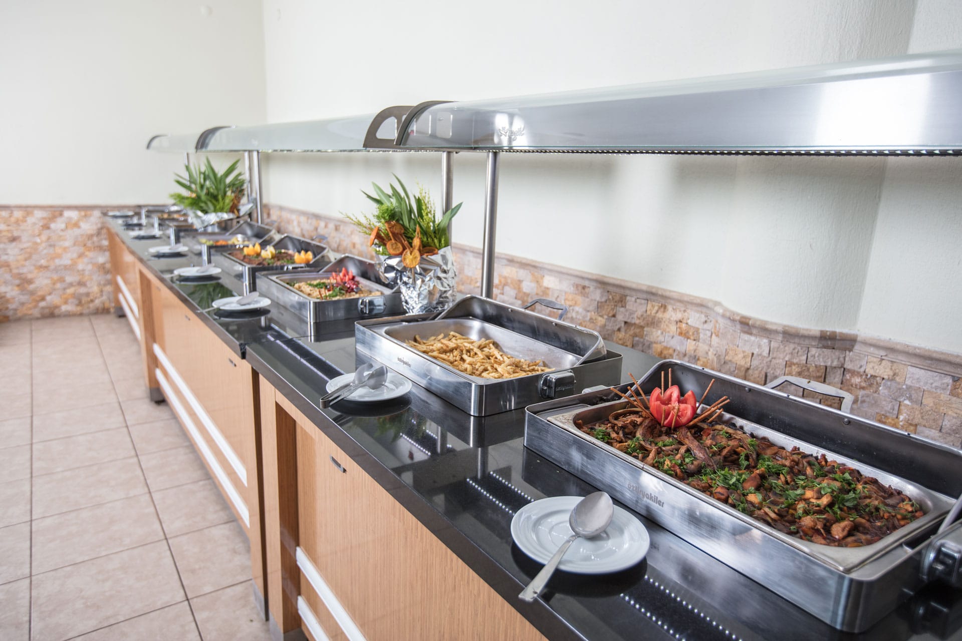 All Inclusive: 10:00-24:00 v lobby baru a v baru u bazénu. Snídaně 7:00-10:00, obědy 12:30-14:00, večeře 19:00-21:30, snack: 14:00-16:30, koláčky, zmrzlina: 16:00-17:30, půlnoční polévka 23:30-02:00. Gozleme: 14:00-17:00. Hotelové bary: alkoholické nápoje místní výroby, nealkoholické nápoje, teplé nápoje dle hotelového konceptu. Všechny nápoje se podávají servírované ve skleničkách. Importované nápoje, čerstvé ovocné džusy jsou za poplatek.
